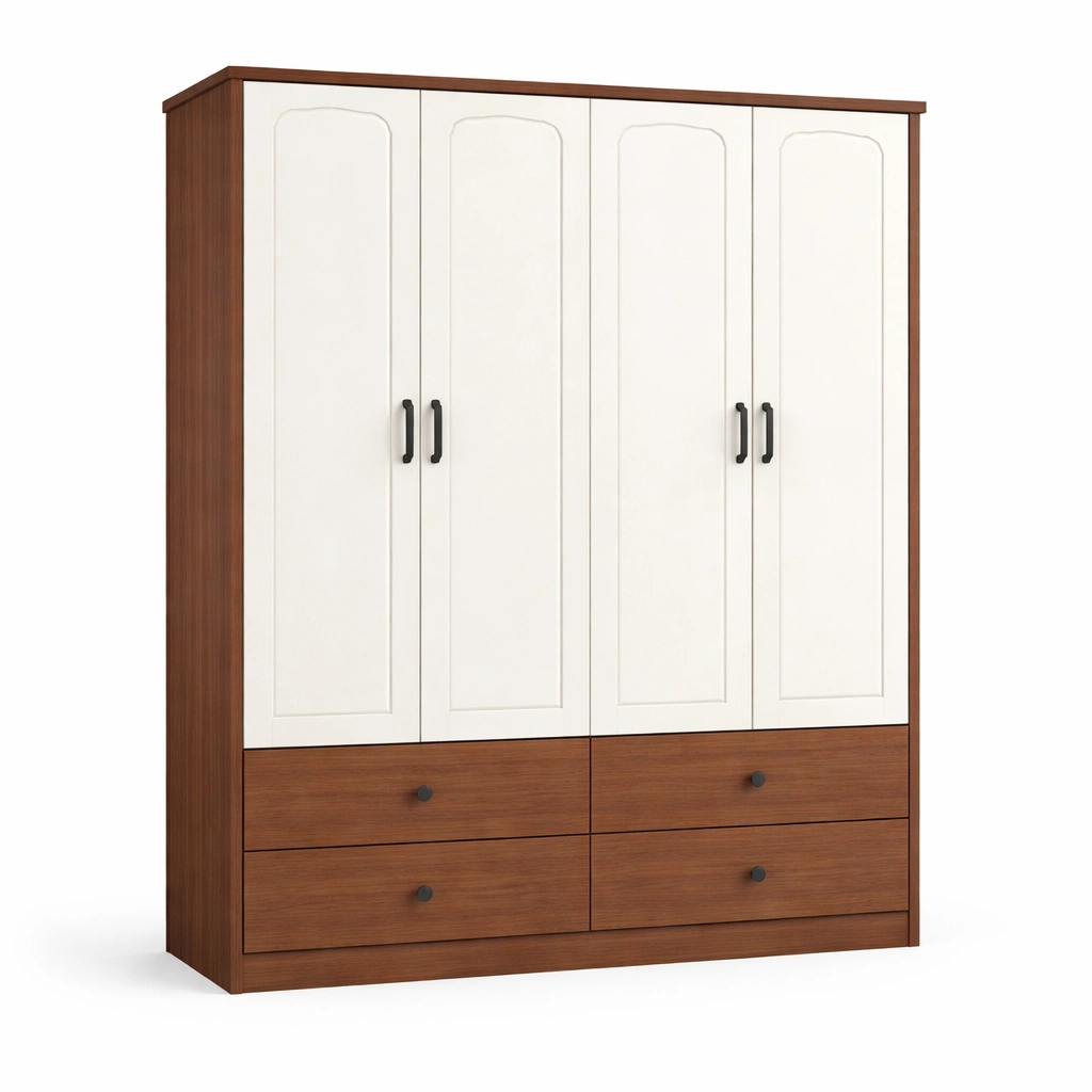 Armario de mdf blanco y madera con puertas y cajones