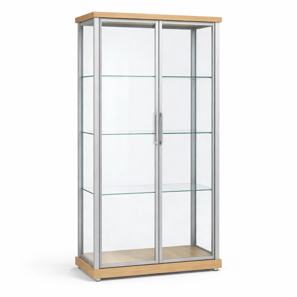 Vitrina de vidrio templado roble plata con marco de aluminio